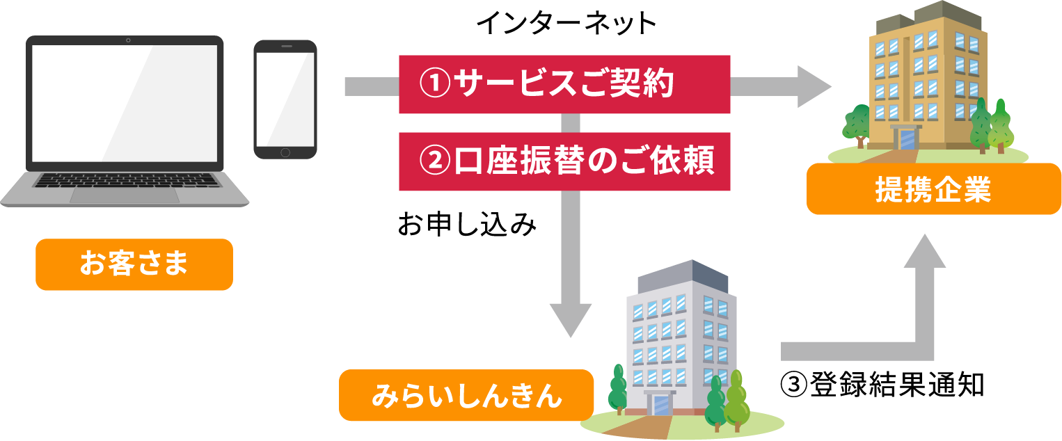 - 各提携企業による口座振替の開始時期は、各提携企業の手続き完了後となります。