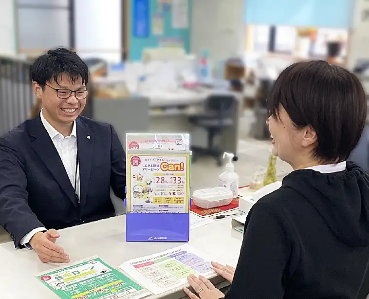職域サポート専用商品を利⽤することで、通常よりも優遇された金利で、各種ローンを利⽤することができます。また、「職場に来てもらえるので窓⼝に⾏く⼿間がなくて助かる」という声も非常に多く、忙しい⽇々の中でも簡単に⼿続きができるため、⼿間がかかりません。