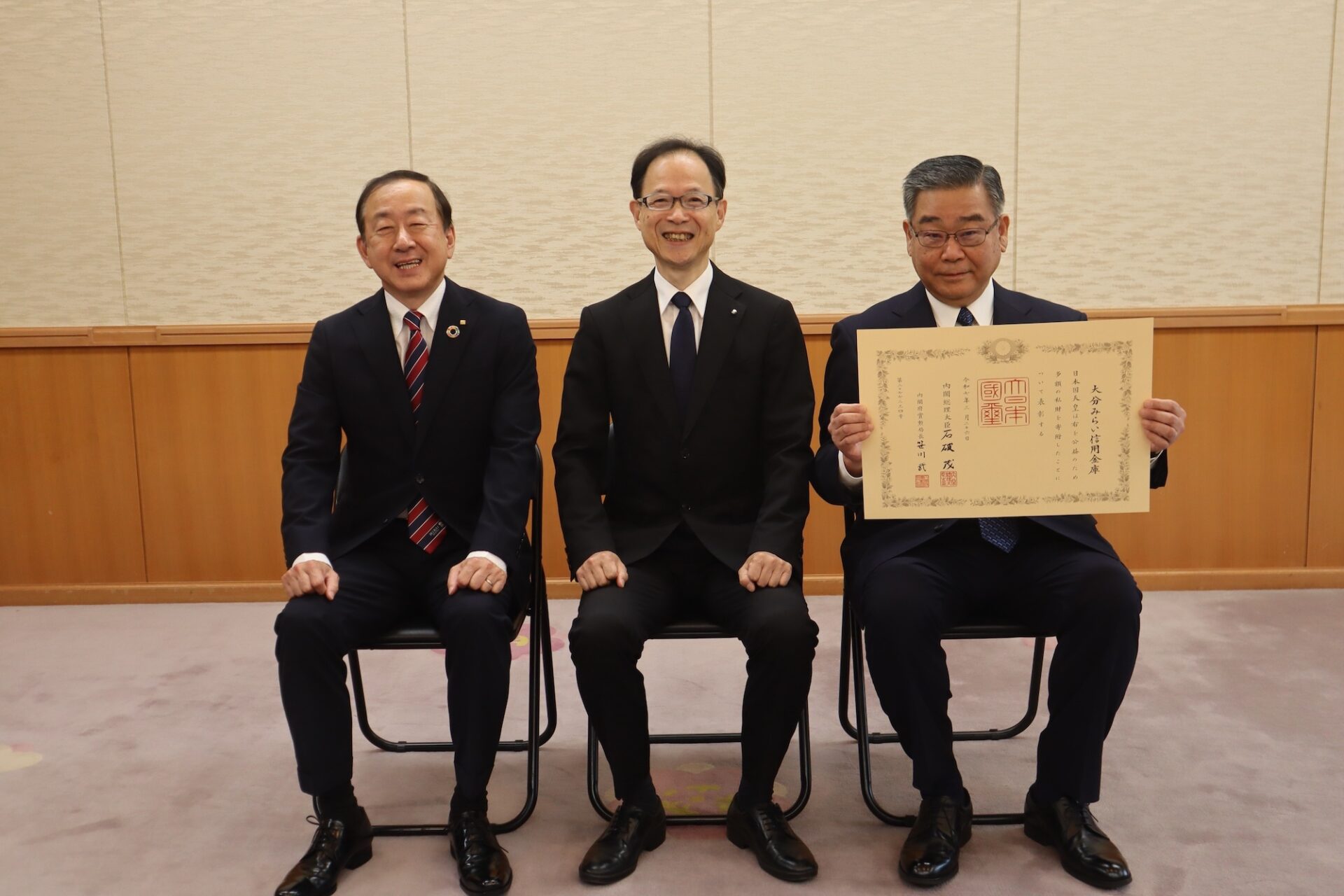 このたび、大分みらい信用金庫は、令和6年4月3日に別府市へ行った1,000万円の寄附に対し、「紺綬褒章」を拝受いたしましたので、お知らせいたします。