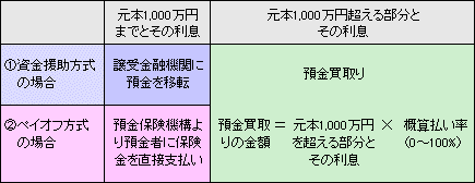 破綻に伴う混乱を最小限に止めるため、ペイオフ方式よりも資金援助方式の適用が優先されていますが、(1)(2)いずれの方式でも預金等の保護の範囲は同じです。