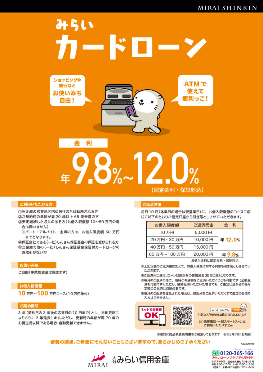 また、急にお金が必要になったときなどに安心してご利用いただけます。