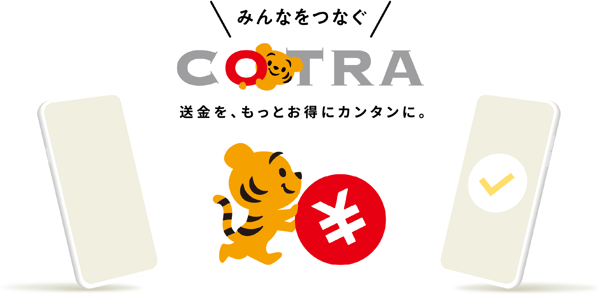 | 送⾦⽅法 | ・⼝座番号 ・携帯電話番号・メールアドレス(受取⼈が事前に受取設定をしている場合のみ) ※送⾦可能先は、ことらに加盟している⾦融機関等の個⼈のお客さまの⼝座が対象となります。 詳細は以下のことらホームページをご覧ください。 https://www.cotra.ne.jp/p2pservice/ |